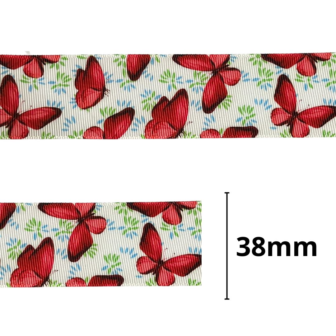 fita gorgurão estampada borboleta 38mm ref 0050 c/ 10 metros