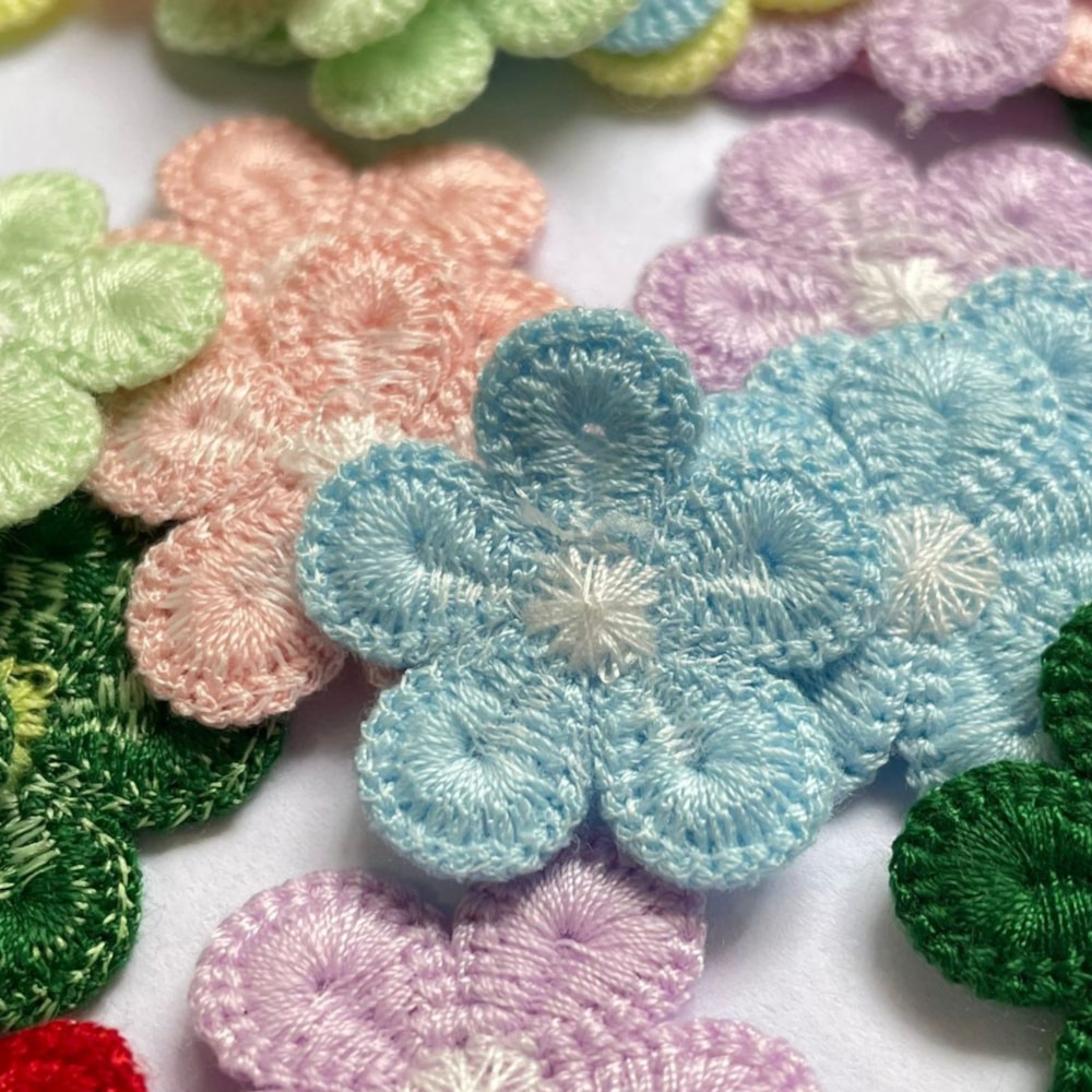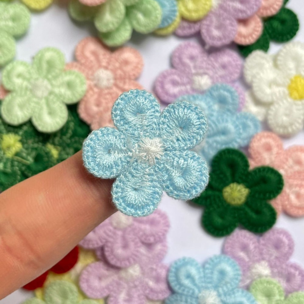 O aplique de flor bordada é muito usado na criação de chaveiros, lembrancinhas, enfeites, scrapbooking, capas de caderno e projetos DIY no geral. Suas cores sortidas permitem composições variadas, adequadas a temas românticos, delicados ou mais vibrantes.