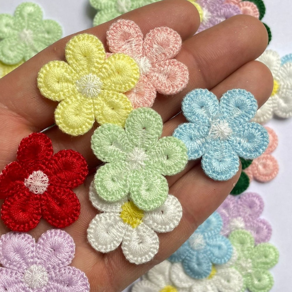 Aplique de Flor Bordada 3cm Sanding – Pacote com 10 Unidades, Cores Sortidas, 100% Poliéster | Detalhes Delicados para Personalizar Suas Criações
