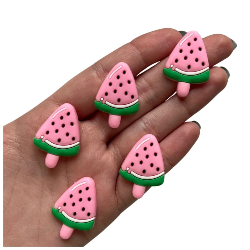 O Aplique de Silicone Sorvete Melancia da Newz, referência AS-177, é o detalhe perfeito para quem deseja adicionar charme, modernidade e um toque divertido aos seus projetos de artesanato. Em um adorável formato de sorvete estilo picolé, inspirado na estética da melancia, o aplique combina as cores verde e rosa, criando um visual vibrante, alegre e extremamente atrativo para produtos infantis, juvenis e temáticos.