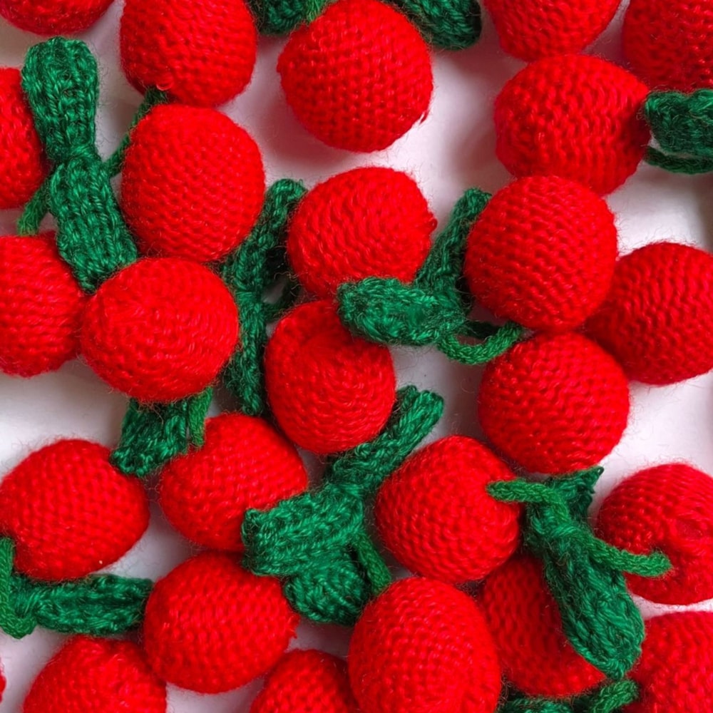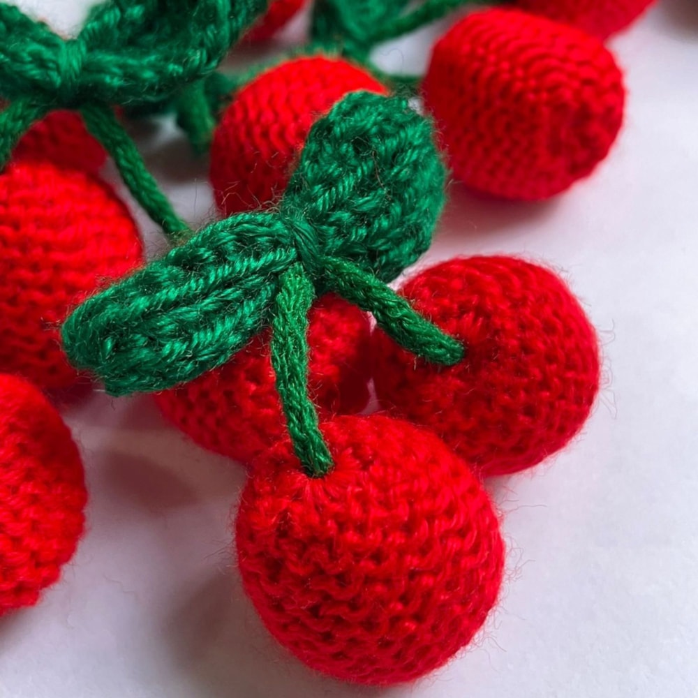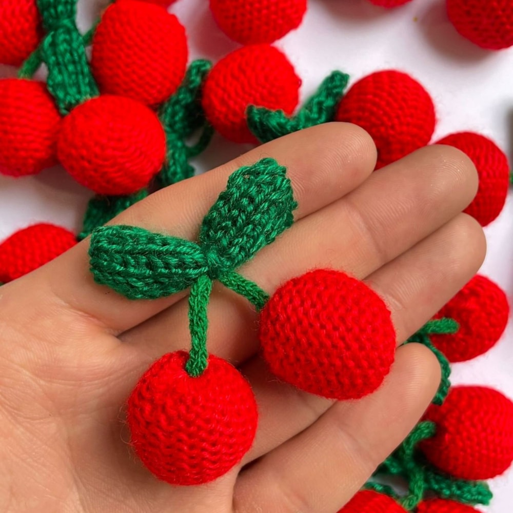 O aplique de cereja em crochê também é muito utilizado na criação e personalização de acessórios, como: