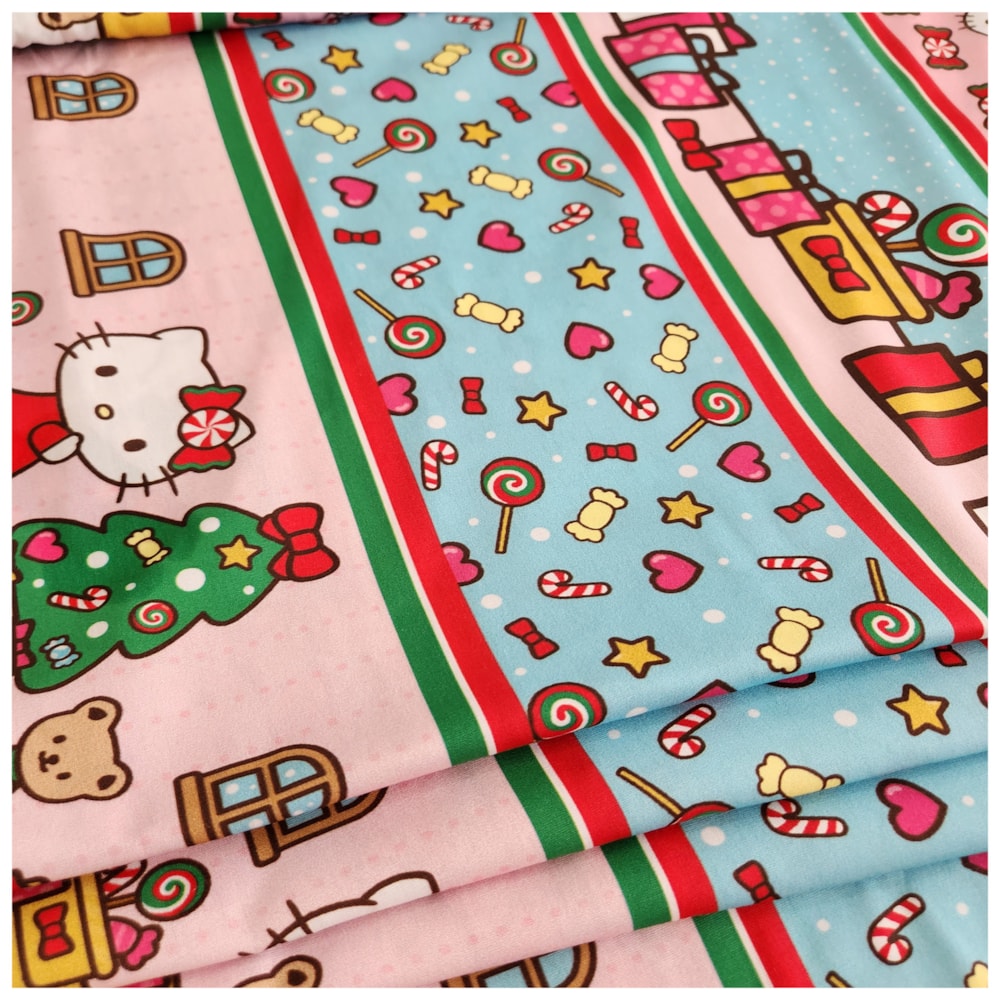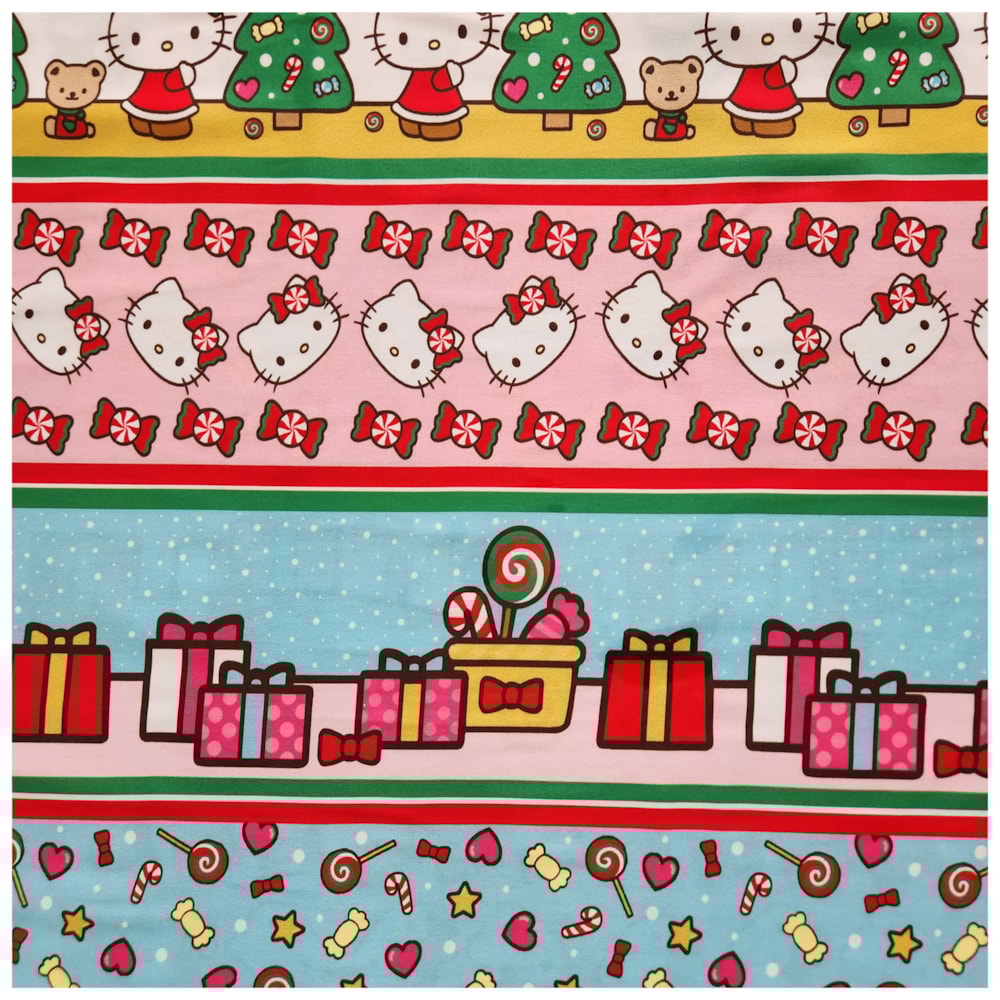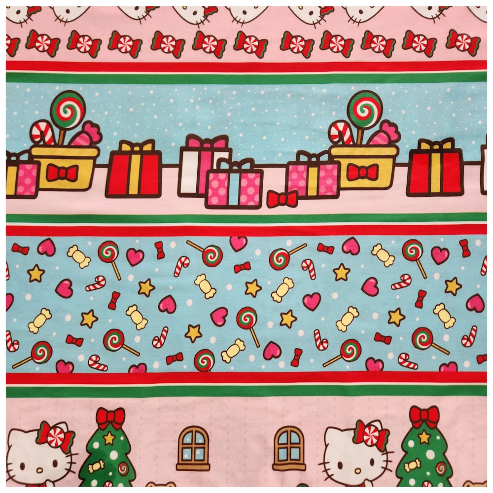 O Tecido Tricoline Barrado Hello Kitty Natal Círculo – Referência 2855 é a escolha perfeita para quem ama unir fofura, criatividade e o clima encantador das festas de fim de ano. Produzido com 100% algodão, esse tecido combina suavidade, resistência e um toque agradável, ideal para os mais variados tipos de artesanato e costura criativa. Sua estampa natalina é um verdadeiro charme: traz a Hello Kitty em meio a árvores de Natal, presentes e detalhes festivos, tudo em cores vibrantes e harmônicas que transmitem alegria e delicadeza em cada detalhe.