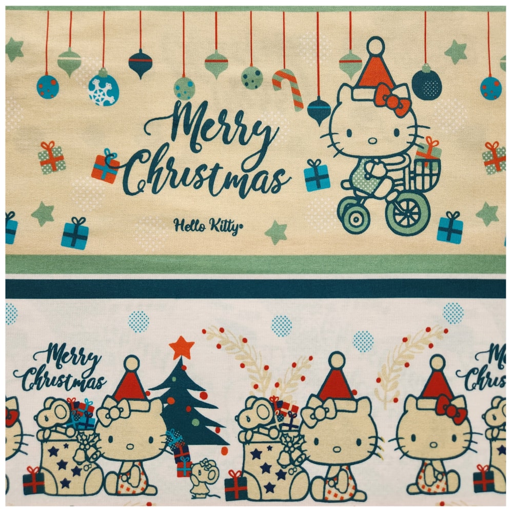 Com estampa barrada exclusiva da Hello Kitty, o tecido apresenta ilustrações encantadoras inspiradas no Natal, com cores vibrantes e detalhes festivos que remetem à magia dessa época do ano. Essa característica o torna ideal para projetos criativos que buscam um visual alegre e temático, especialmente para quem ama unir o universo fofo da personagem Hello Kitty com o clima natalino.
