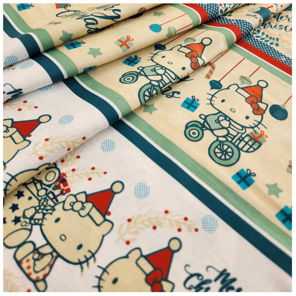 O Tecido Tricoline Barrado Coleção Hello Kitty Natal – Referência 2865 é a escolha perfeita para quem deseja criar peças únicas, delicadas e cheias de charme durante a temporada natalina. Produzido em 100% algodão de alta qualidade, este tecido oferece um toque macio, agradável e respirável, ideal para quem valoriza conforto, durabilidade e beleza em seus trabalhos de costura e artesanato.