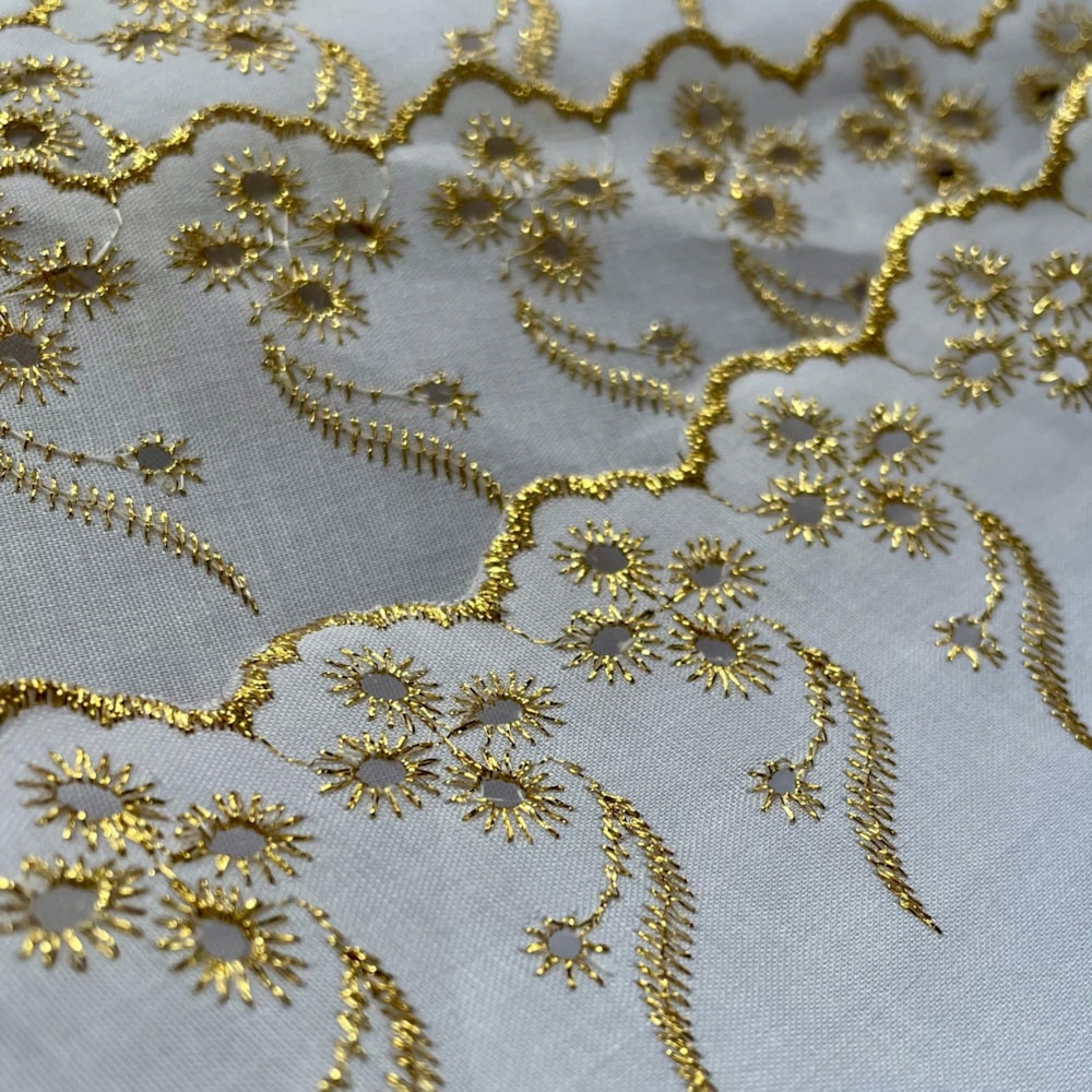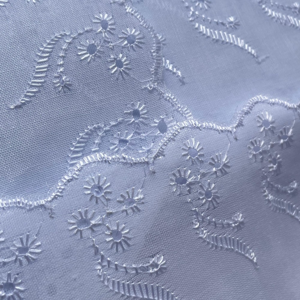 Durabilidade: Por conter poliéster em sua composição, o bordado inglês tem maior resistência ao desgaste e às lavagens.