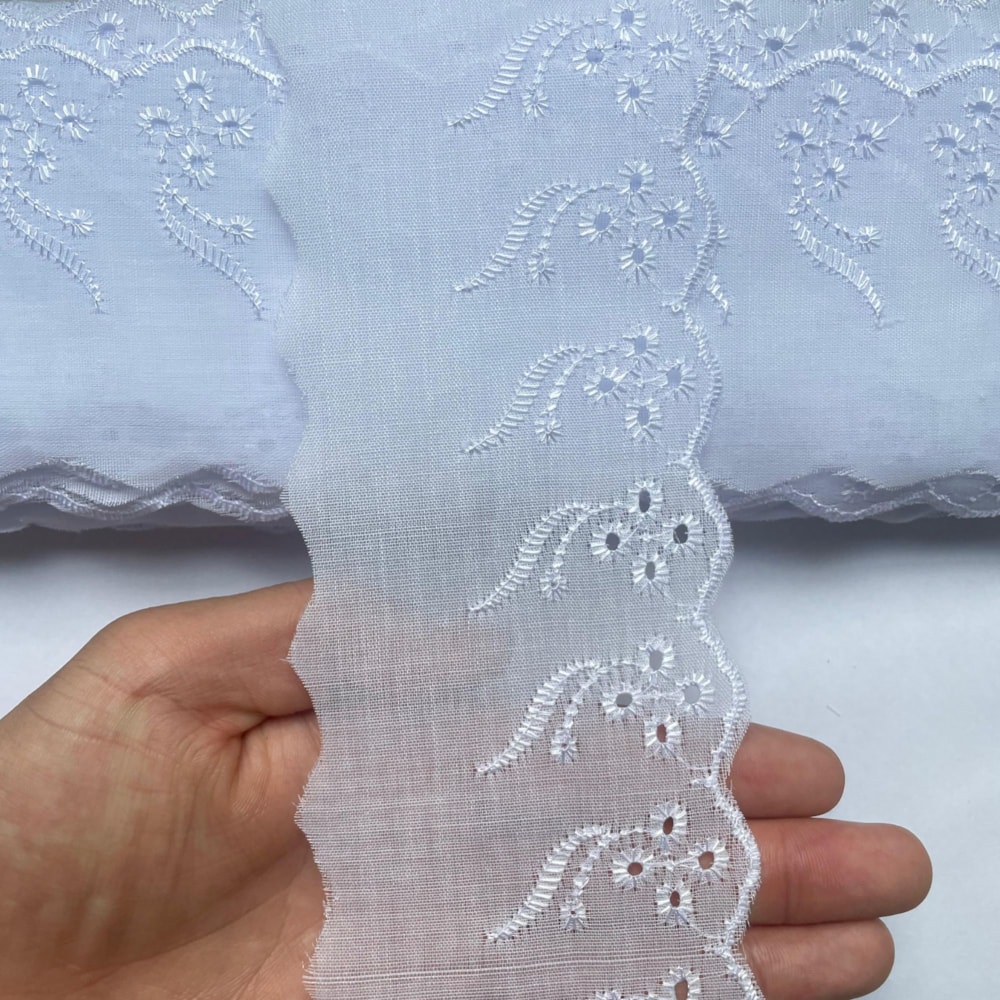 O bordado inglês de poliéster modelo CTB-146 é a escolha ideal para quem busca qualidade, beleza e versatilidade em um único produto. Com ele, é possível criar peças únicas e sofisticadas com facilidade e elegância. Aproveite e transforme seus projetos de costura com esse acabamento delicado e encantador.