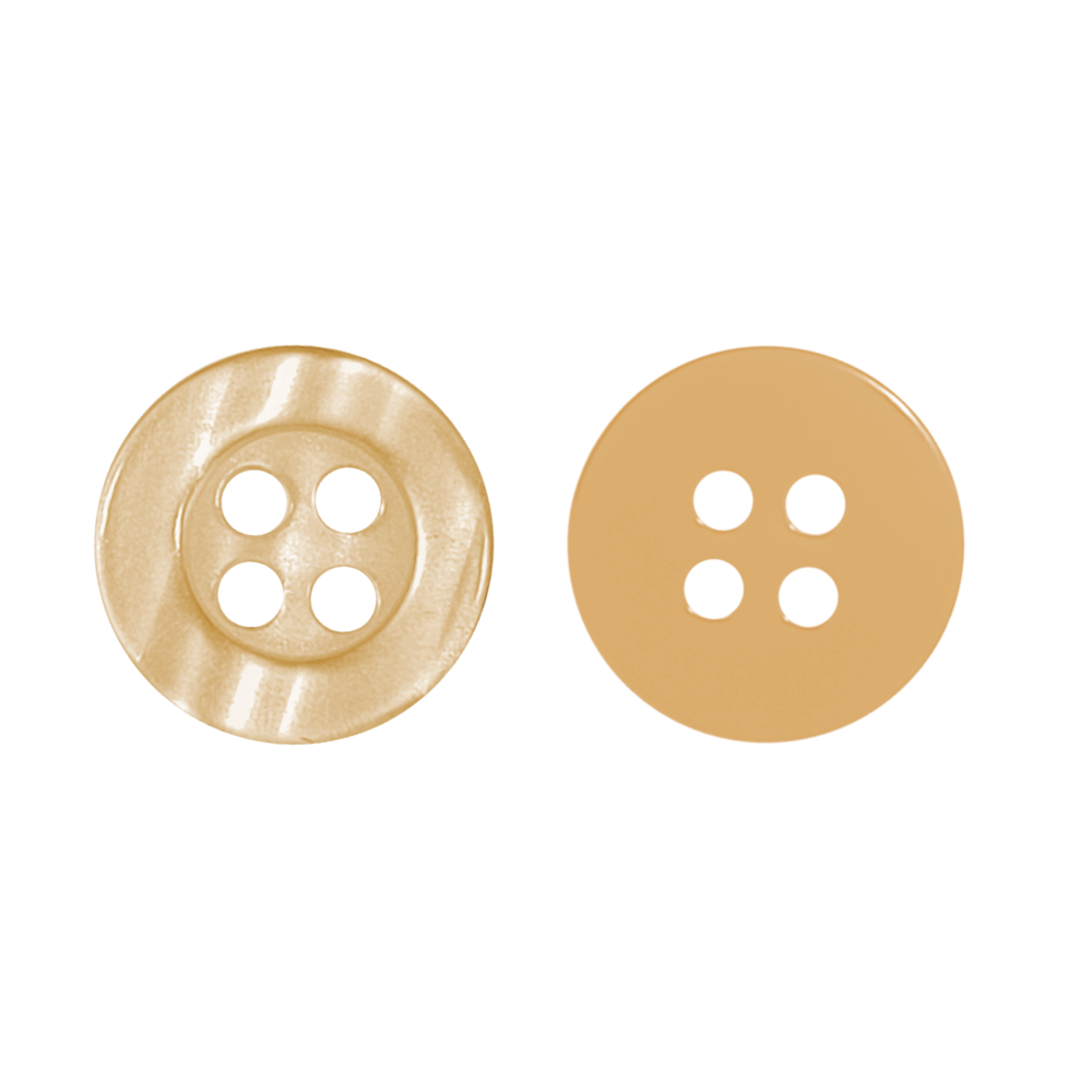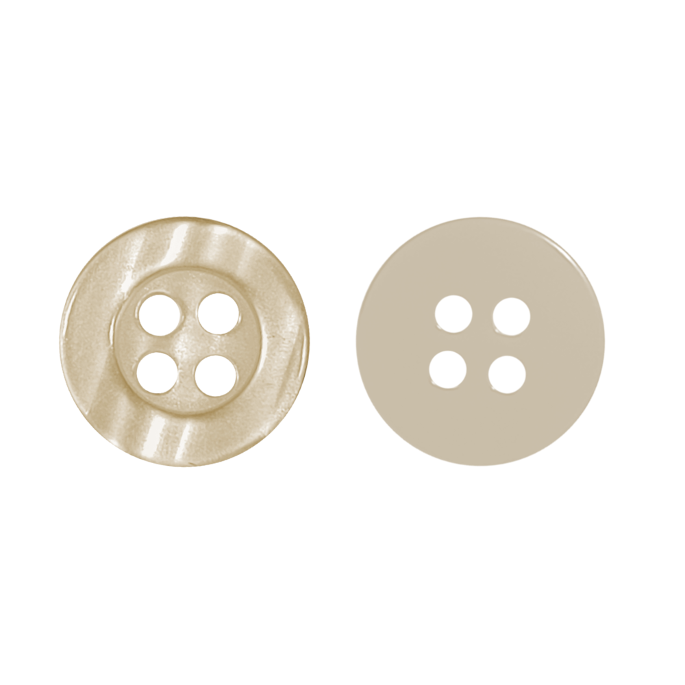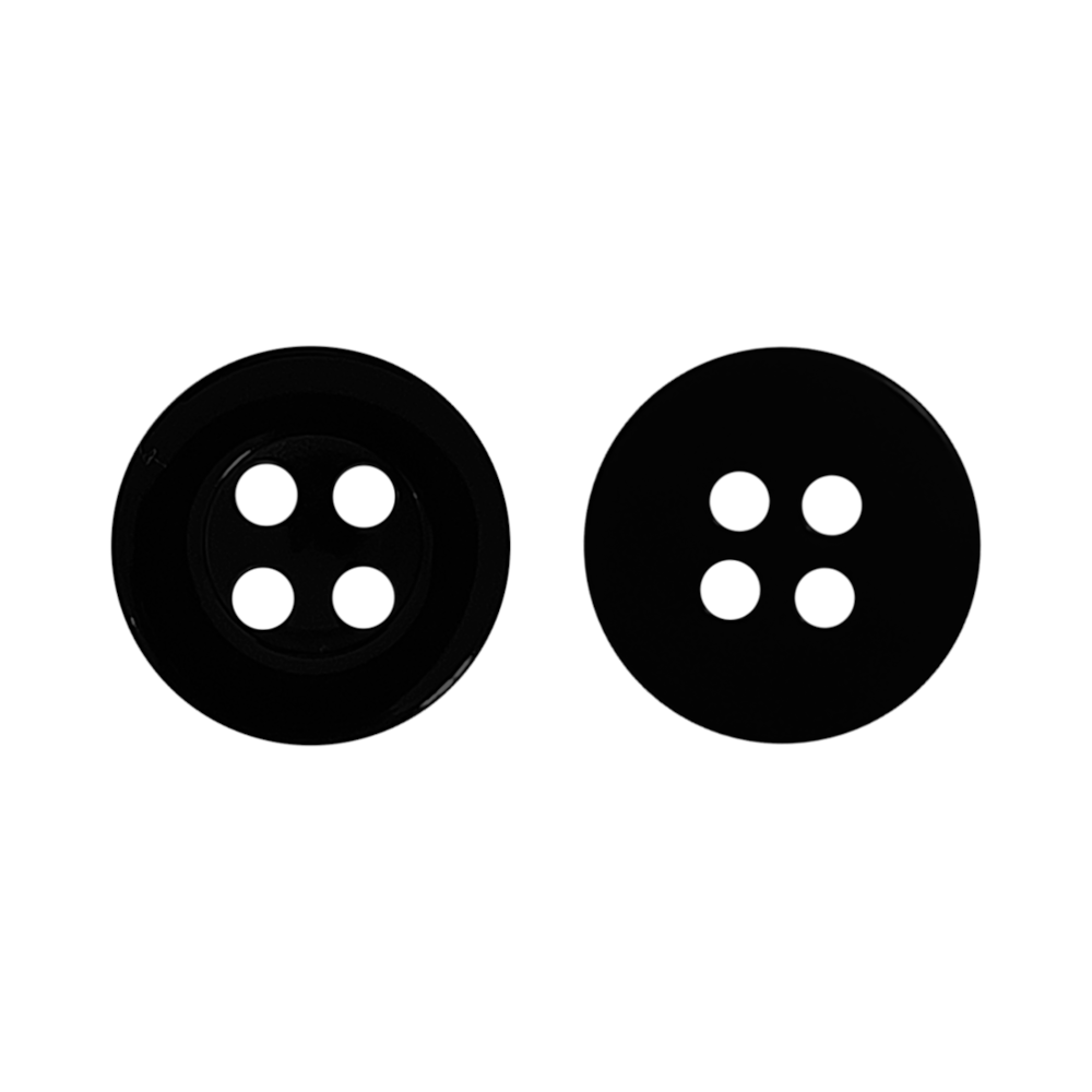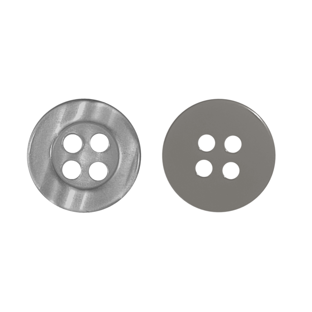 Fixação Superior (4 Furos): O design tradicional com 4 furos é a garantia de uma fixação segura e firme no tecido. Os quatro pontos de costura distribuem melhor a tensão e impedem que o botão se solte facilmente, fator crucial para a satisfação do cliente final. O padrão de 4 furos também permite a criação de um design de costura em "X" ou paralelo, agregando valor estético.