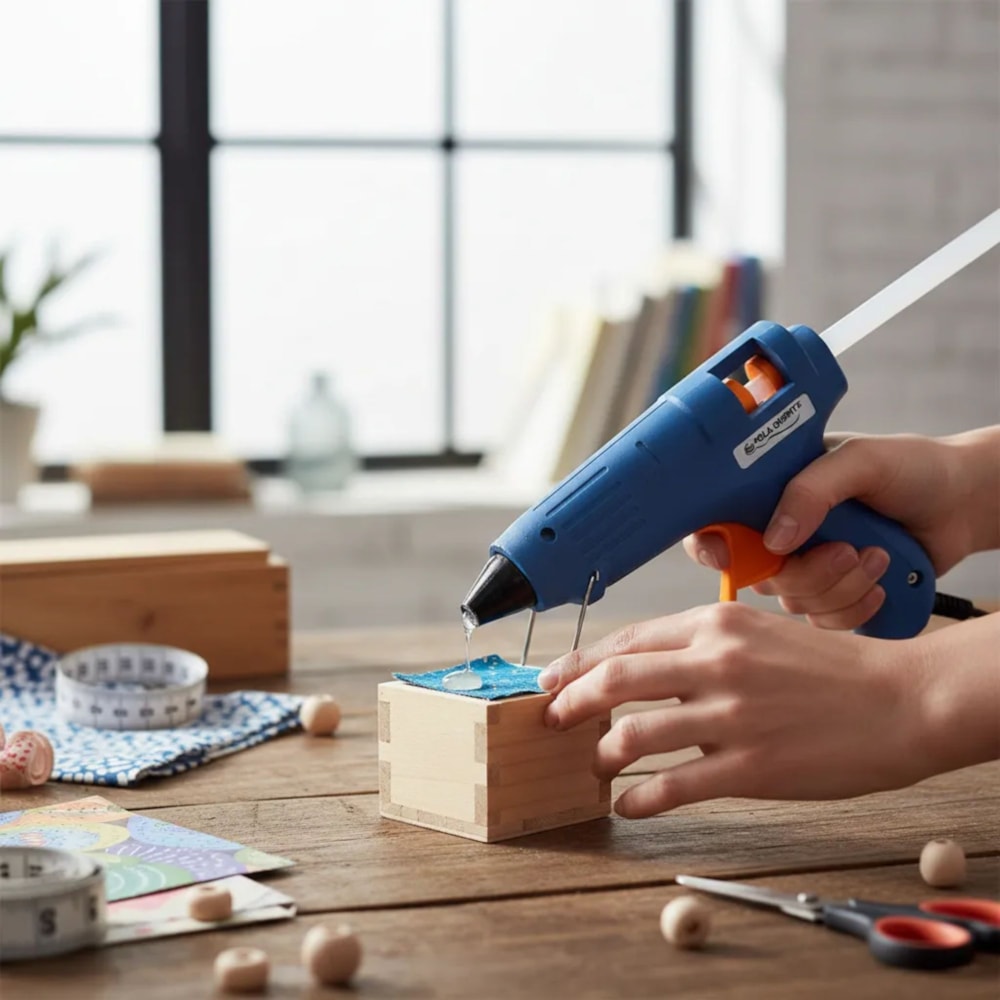 A cola quente seca rapidamente e permite acabamento resistente em poucos segundos.