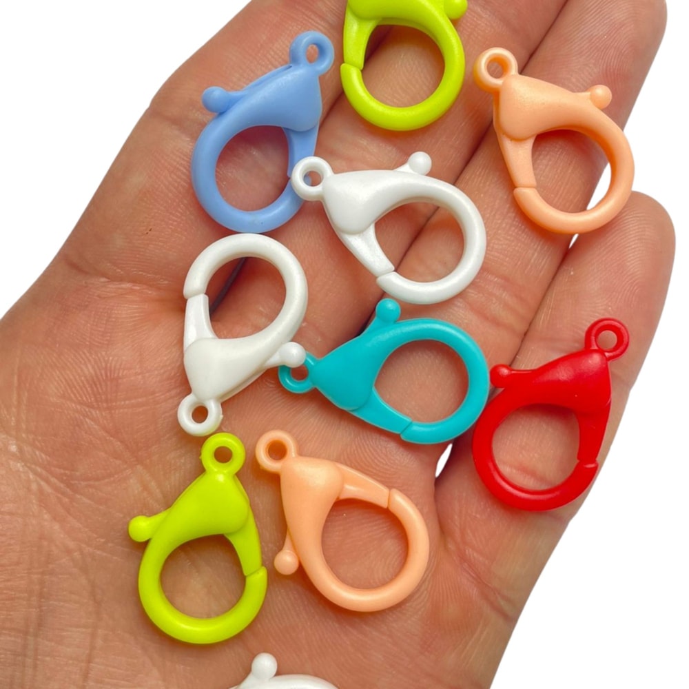 Use o fecho mosquetão lagosta para confeccionar chaveiros, lembrancinhas, pingentes decorativos, cordões de crachá, acessórios infantis e itens personalizados. O material plástico garante segurança e é ideal para projetos escolares e infantis por ser leve e sem pontas metálicas.