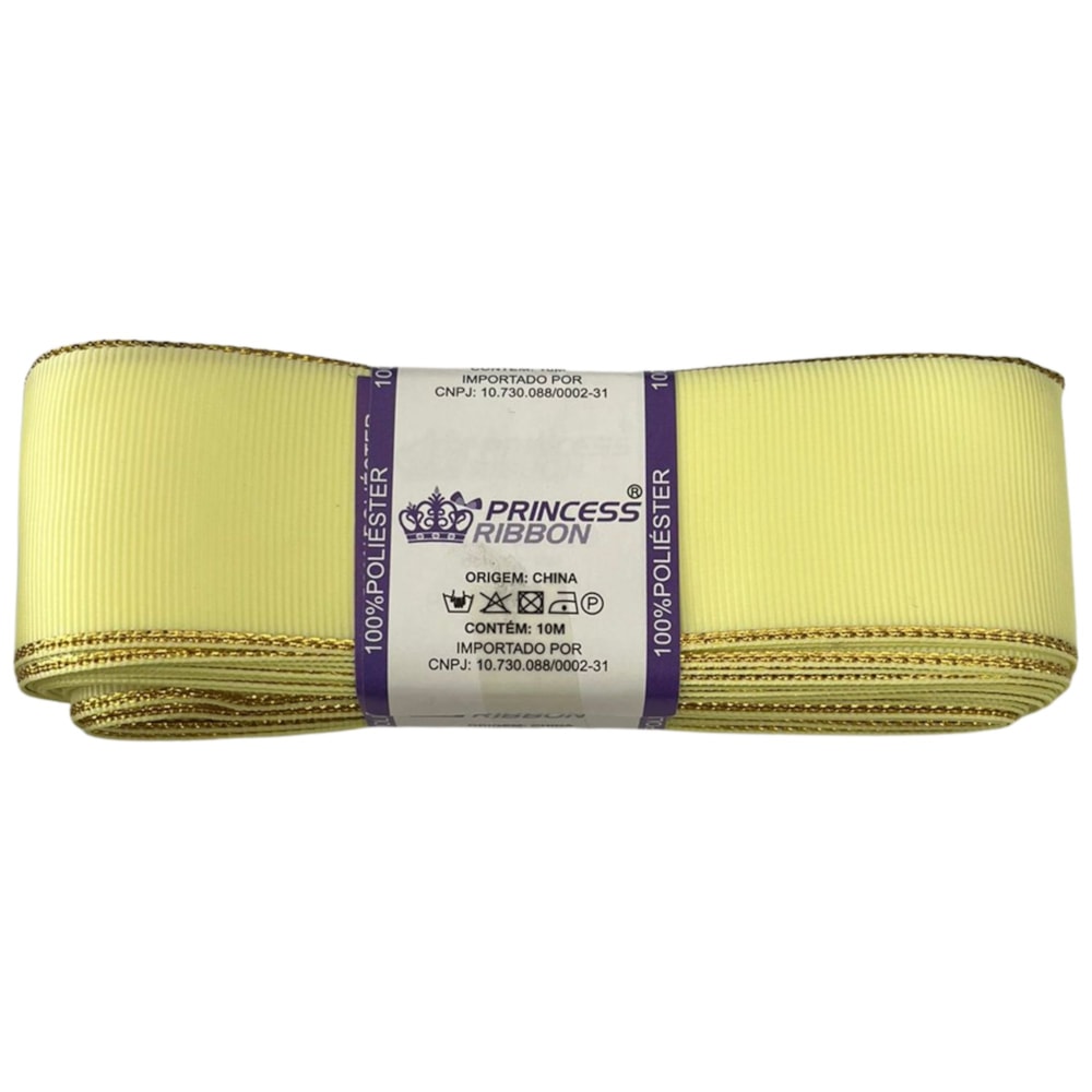 A Fita de Gorgurão com Borda Dourada 38mm com 10 Metros Princess é uma excelente escolha para quem busca adicionar um toque de elegância e sofisticação aos seus projetos de costura e artesanato. Com 100% poliéster em sua composição, essa fita oferece resistência, durabilidade e um acabamento de alta qualidade. A borda dourada dá um toque luxuoso à fita, tornando-a ideal para uma ampla gama de aplicações, desde itens de decoração até a personalização de roupas e acessórios.