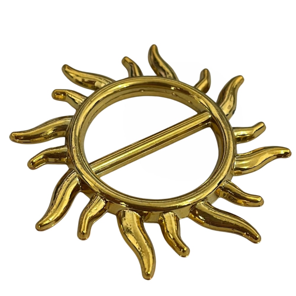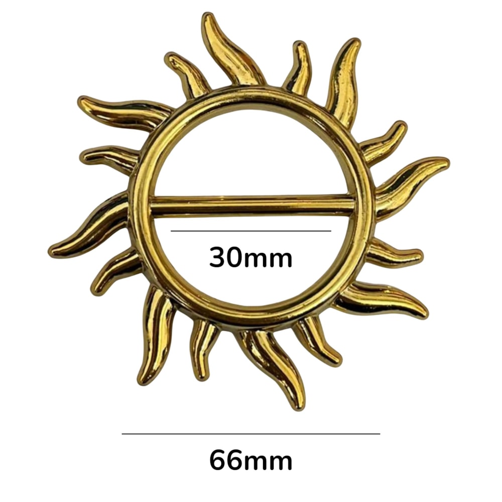 O tamanho interno de 30mm é ideal para o encaixe de diversos tipos de tiras, elásticos e alças, garantindo segurança e um ajuste confortável. Esse formato permite que o acessório seja utilizado em diferentes modelos e estilos, sem perder a harmonia estética. A fivela Sol 7886 possui bordas bem definidas, linhas suaves e um acabamento que valoriza o desenho do sol, tornando-a uma opção muito procurada por confecções, artesãos e designers que desejam criar peças diferenciadas e cheias de estilo.