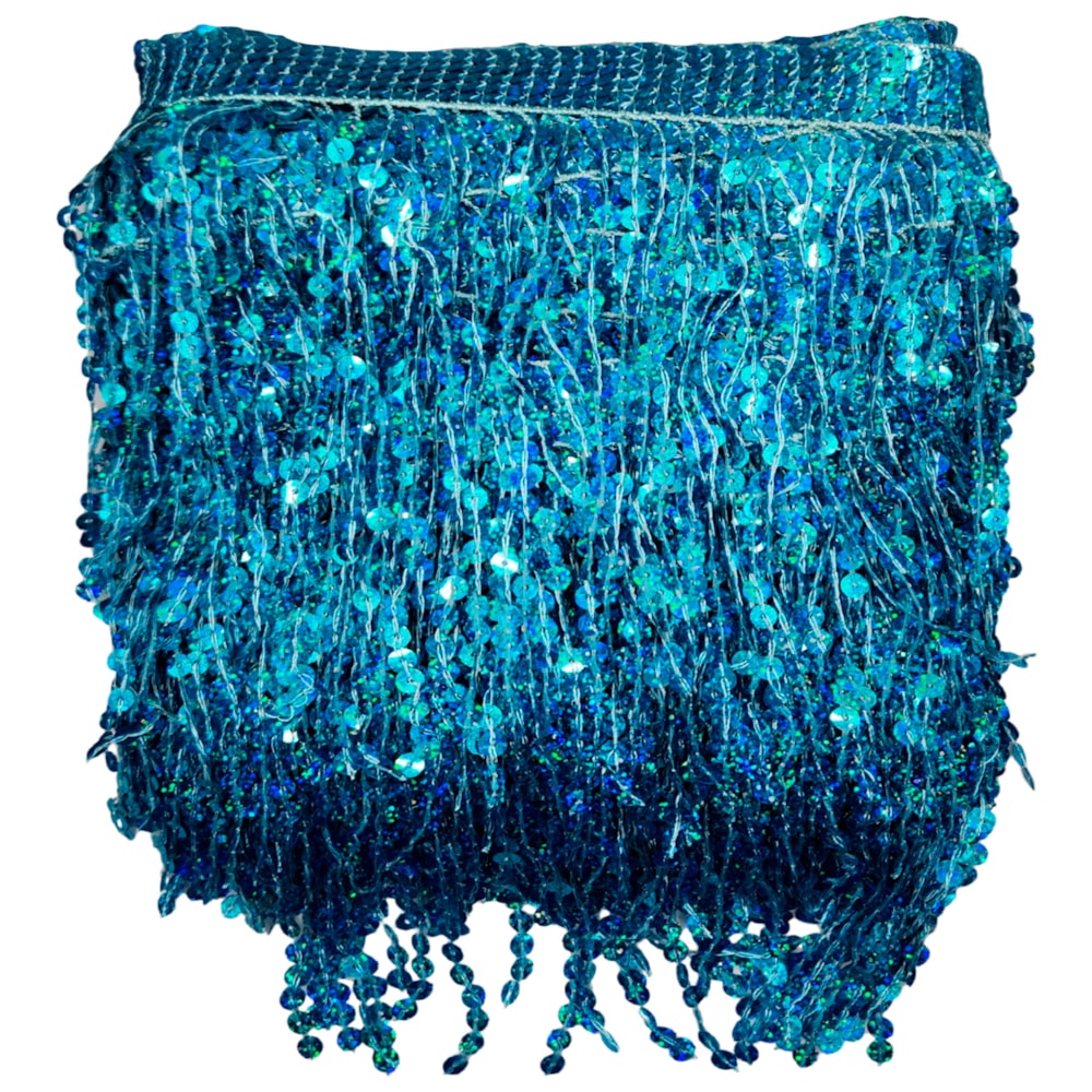 Com 20 cm de comprimento, a franja proporciona um efeito visual marcante, criando movimento a cada passo ou gesto. Seus paetês refletem a luz de forma intensa, valorizando apresentações em palcos, desfiles, festas temáticas e eventos carnavalescos. O rolo com 9 metros garante ótimo rendimento, permitindo aplicações contínuas e acabamento profissional em peças maiores ou múltiplos projetos.