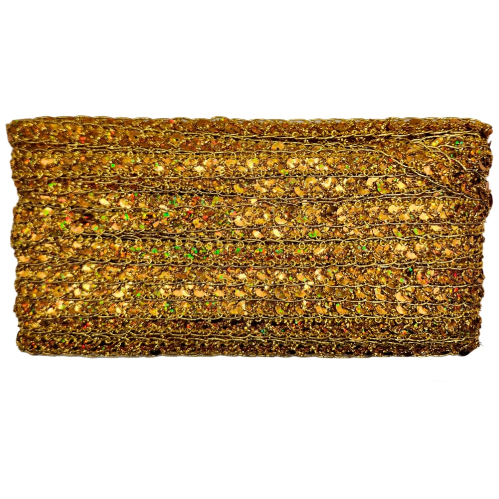 Aplicações e Usos do Galão Metalizado 10mm O Galão Metalizado Ref. 142 NYBC é altamente versátil, sendo amplamente utilizado em diversas áreas. Decoração de Roupas e Acessórios Este galão é perfeito para a customização de roupas, como vestidos de festa, fantasias, jaquetas e saias, além de ser ideal para adornar acessórios como chapéus, bolsas e sapatos. Seu acabamento brilhante confere um visual sofisticado, valorizando ainda mais suas peças. Artesanato e Trabalhos Manuais Se você trabalha com artesanato, o galão metalizado será um grande aliado. Ele pode ser utilizado em scrapbooks, embalagens personalizadas, laços decorativos, lembrancinhas de festas e muito mais. É ideal para criar detalhes refinados que fazem a diferença. Decoração de Ambientes Na decoração, este galão pode ser usado para criar bordas em toalhas de mesa, cortinas, almofadas e outros itens de tecidos. Além disso, é excelente para decorar festas, eventos e celebrações, sendo aplicado em centros de mesa, painéis, arcos e outros elementos decorativos. Indústria e Moda Na indústria têxtil e da moda, o galão metalizado é muito utilizado para a finalização de produtos, agregando valor e elegância às peças. Designers de moda e costureiros profissionais frequentemente utilizam este tipo de galão para criar detalhes exclusivos e sofisticados.