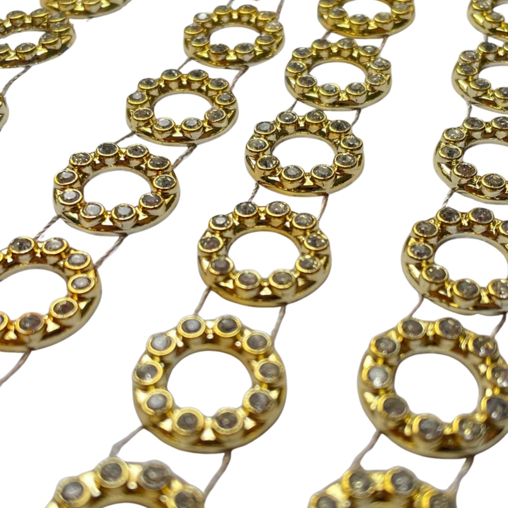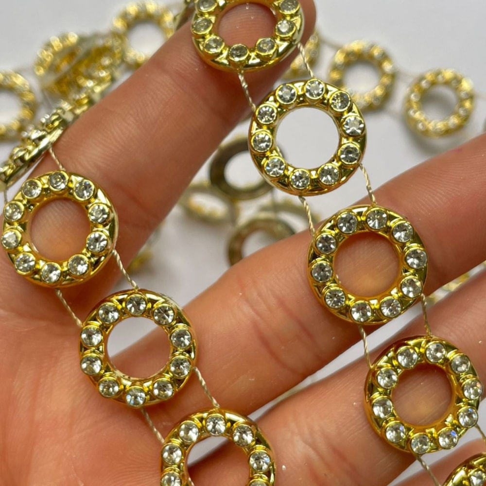 Moda e Confecção: Ideal para acabamento em vestidos, saias, blusas, roupas infantis e trajes de festa. O galão pode ser costurado em golas, mangas, cinturas e barras, agregando um toque de brilho e sofisticação.