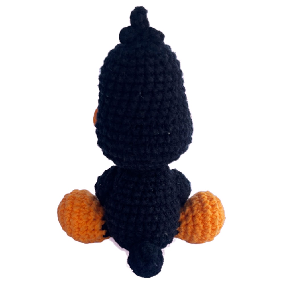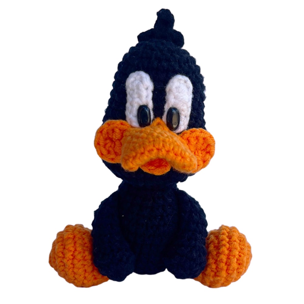 Além disso, o amigurumi pode ser destaque em festas temáticas dos Looney Tunes, decorações de mesa, cenários fotográficos, vitrines e eventos especiais relacionados a cultura pop. Seu visual carismático e reconhecível faz dele uma peça incrível para compor ambientações divertidas e personalizadas.