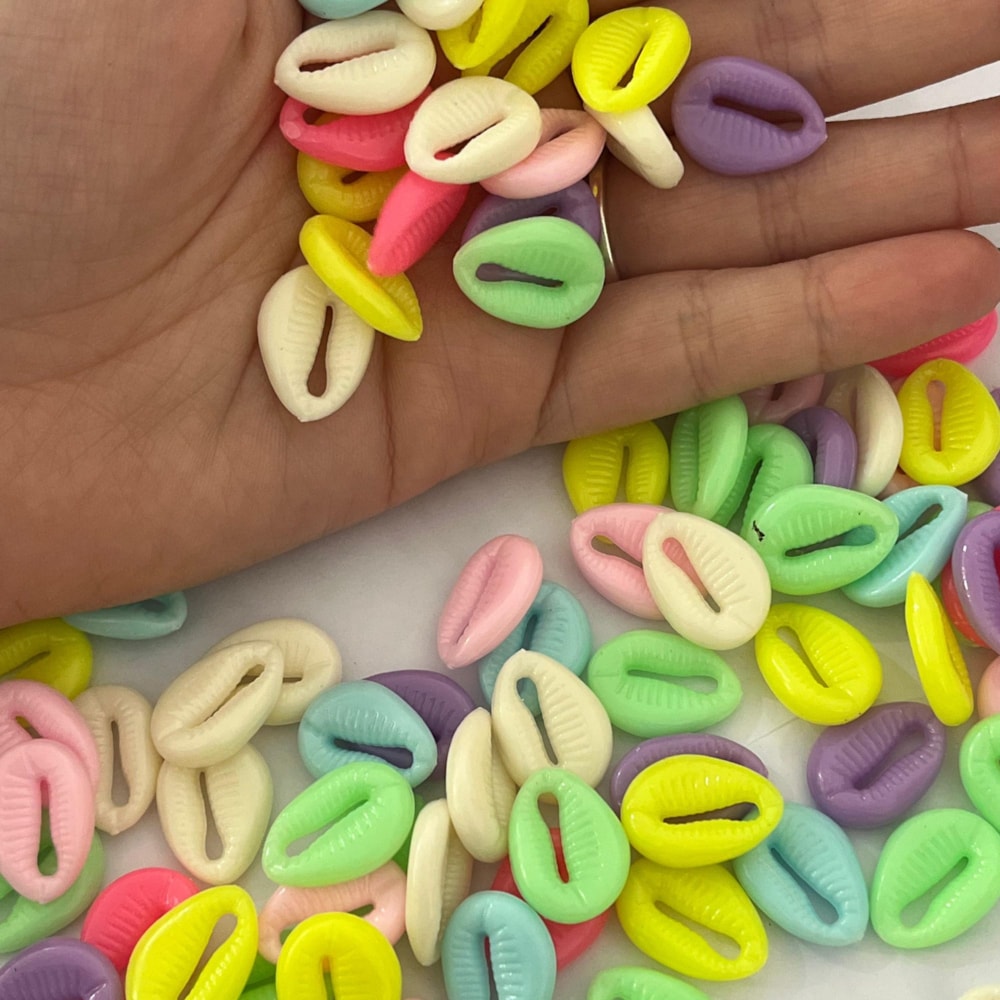 As miçangas em formato de búzio são ideais tanto para artesãos profissionais que produzem em grande escala quanto para quem está começando no mundo do DIY (faça você mesmo). Seu tamanho de 13mm x 18mm é perfeito para dar destaque sem perder a delicadeza, e a embalagem de 100g oferece ótimo custo-benefício.