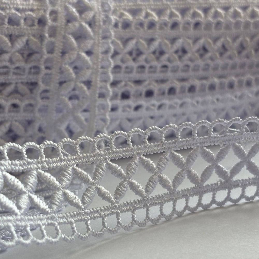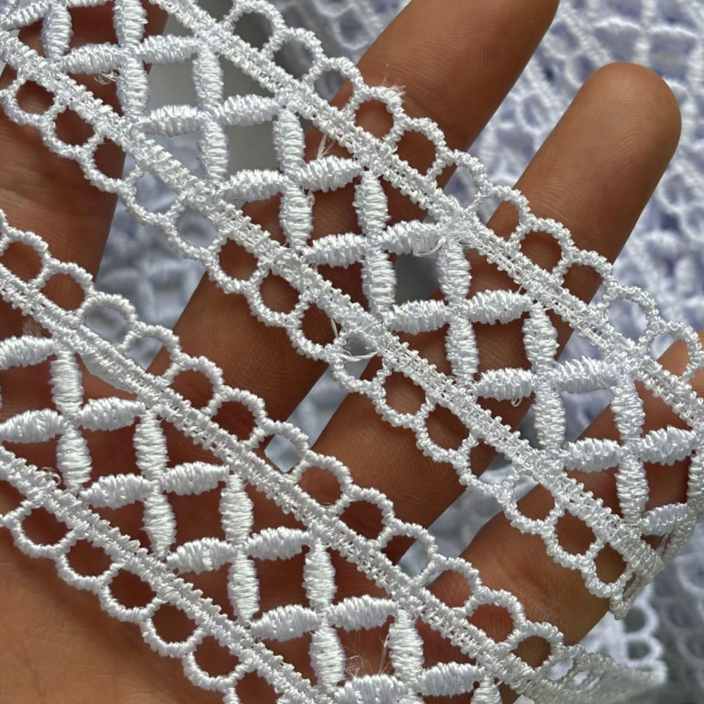 O guipir, também conhecido como renda de richelieu, é uma das rendas mais tradicionais e elegantes utilizadas na costura e na moda. Ele se destaca por possuir tramas bem desenhadas e textura encorpada, o que confere profundidade e destaque às aplicações. O modelo CHL-705, em especial, apresenta um desenho ornamental sofisticado e moderno, capaz de enriquecer qualquer criação com um toque de requinte artesanal.