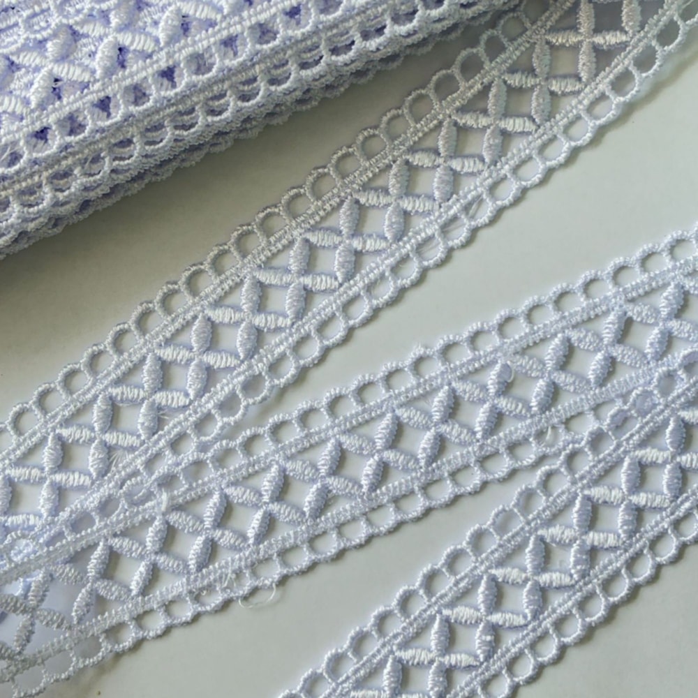 Em acessórios, essa renda pode ser aplicada em laços, tiaras, bolsas, chapéus e faixas de cabelo, agregando um toque romântico e feminino. Já na decoração e no artesanato, é ideal para enfeitar toalhas de mesa, cortinas, capas de almofadas, panos de prato e caminhos de mesa. Seu design ornamental combina com projetos de estilo clássico, vintage ou contemporâneo, adaptando-se facilmente ao gosto de cada artesão.