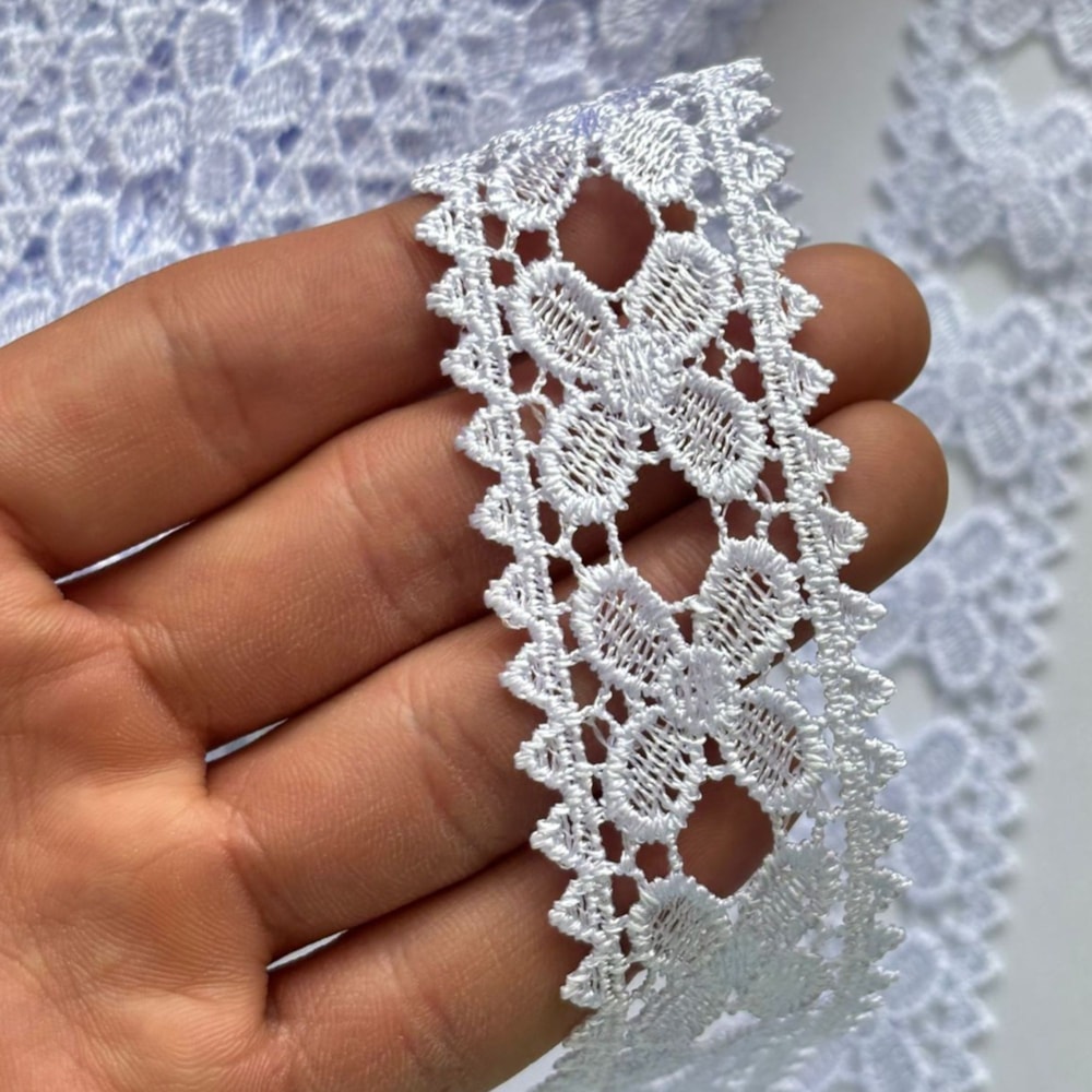 Além de seu design sofisticado, a renda guipir da NYBC apresenta acabamento de alta qualidade, com fios firmes e bem entrelaçados, evitando desfiar e garantindo maior durabilidade mesmo após lavagens. O poliéster confere ainda mais resistência, mantendo a aparência original por muito mais tempo.