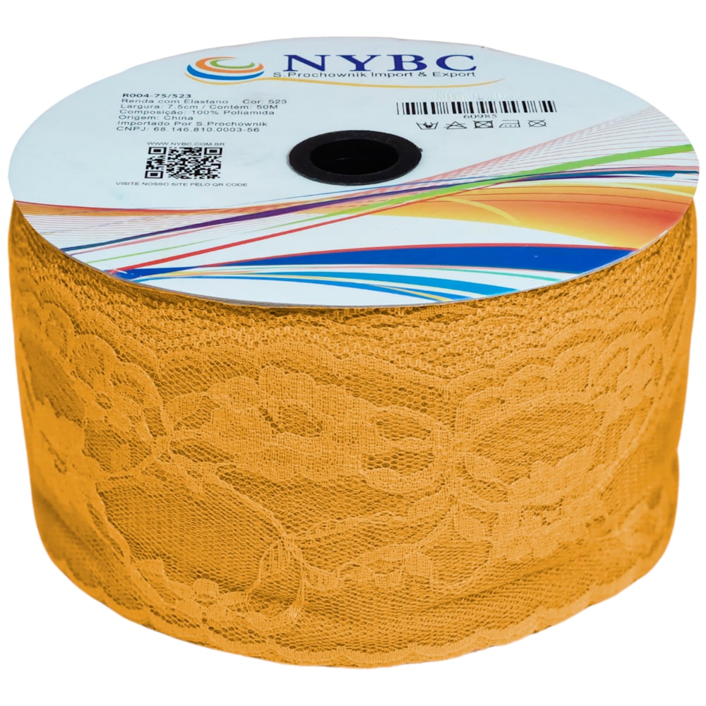 Renda de Poliamida NYBC Ref. R004 – 75mm de Largura e 50 Metros de Leveza e Sofisticação para Seus Acabamentos