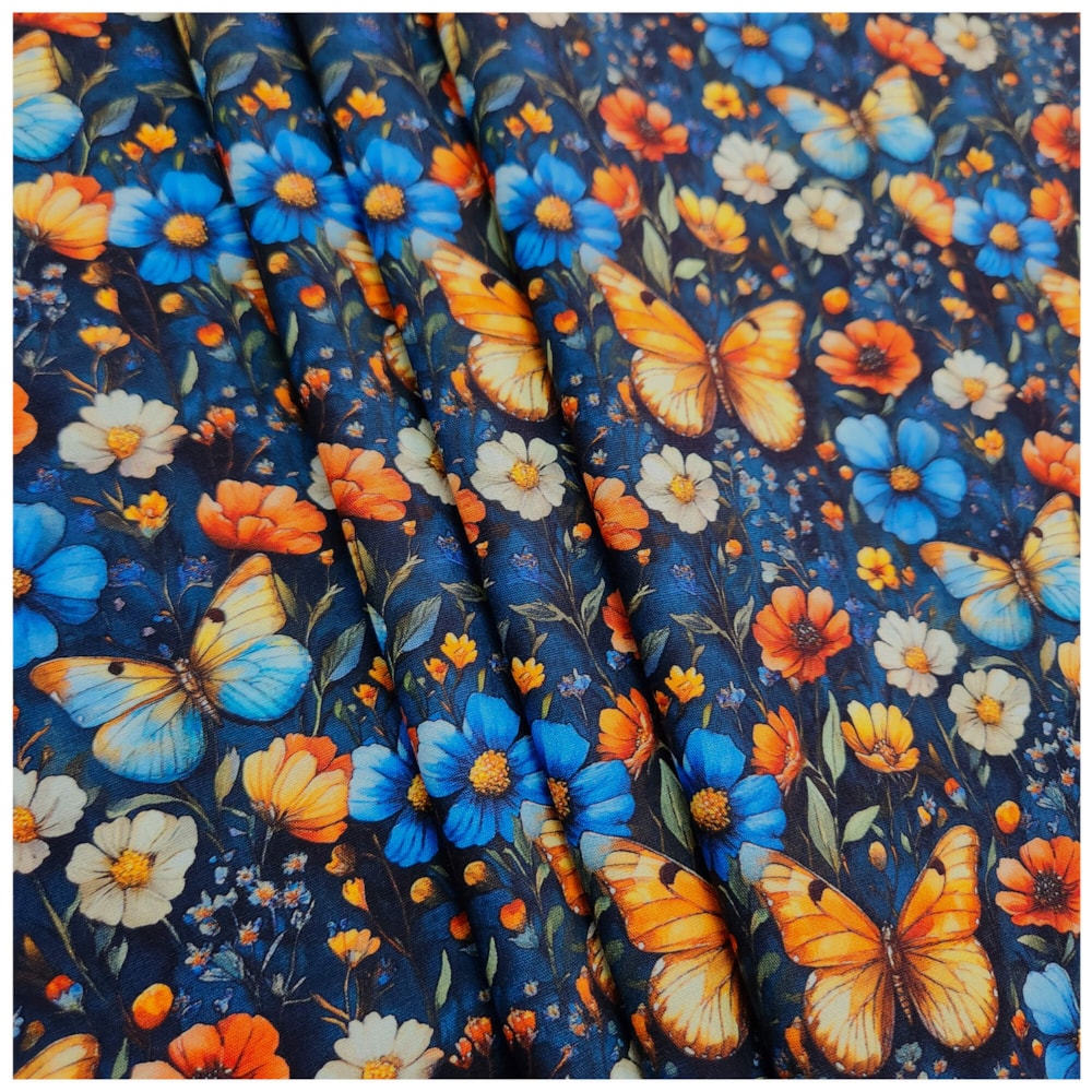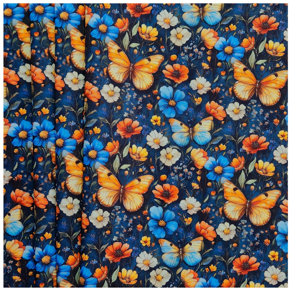Com estampa digital 3D de borboletas coloridas, o tecido se destaca pelo efeito visual realista e vibrante. As tonalidades vivas e o acabamento de alta definição proporcionam profundidade à estampa, valorizando cada detalhe das asas das borboletas e criando uma sensação de movimento natural. A Cor 05 traz uma combinação equilibrada entre tons alegres e sutis, perfeita para diferentes estilos de projetos.