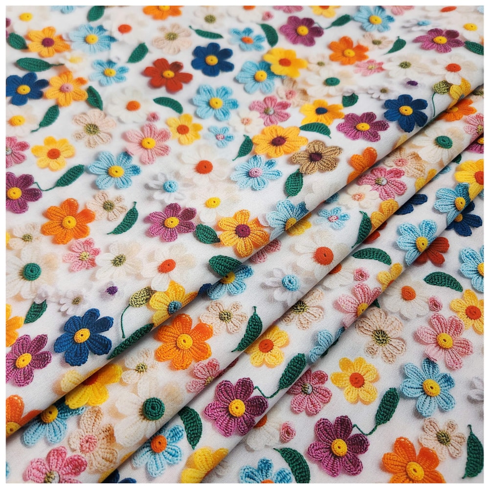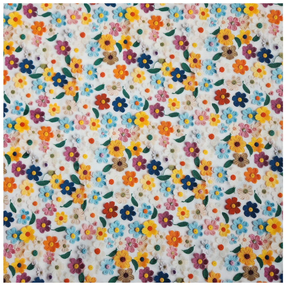 Outra vantagem é a facilidade de combinação: o Tricoline Flores Coloridas 3D harmoniza perfeitamente com tecidos lisos, estampas geométricas ou temáticas, possibilitando inúmeras combinações criativas. É um tecido versátil que se adapta a diferentes estilos — do romântico ao moderno — e pode ser usado em peças para o lar, presentes personalizados ou produtos artesanais para venda.