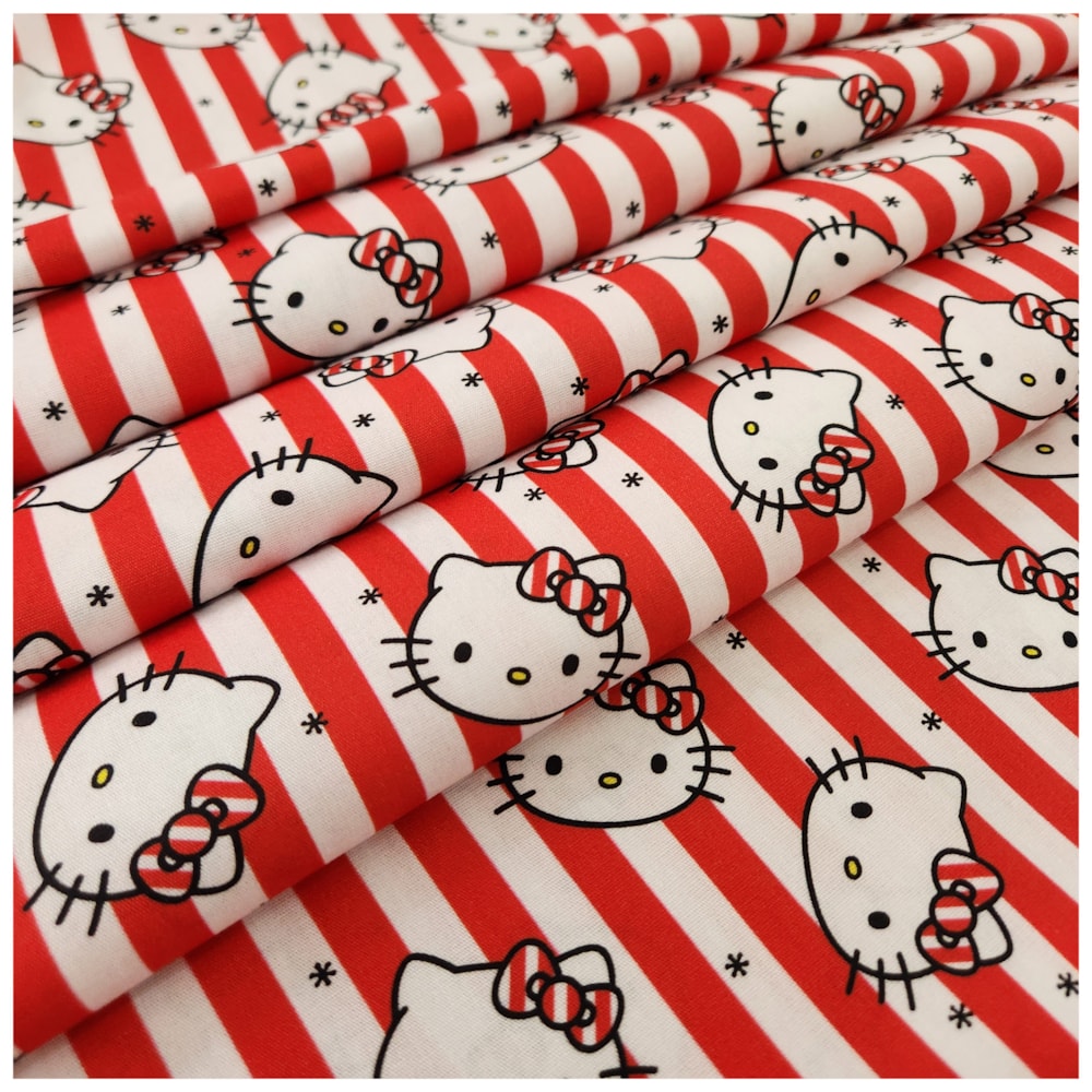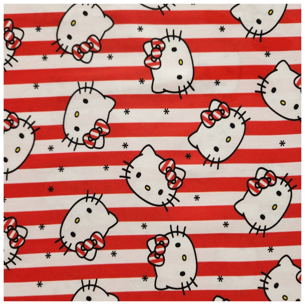 Com o Tecido Tricoline Hello Kitty Círculo, suas criações ganham um toque especial de doçura e elegância. Perfeito para quem ama costurar com qualidade, estilo e personalidade!